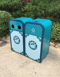 在這些產品中,細細說環保垃圾桶型號為F74鋼板沖孔垃圾桶,采用優質冷軋鋼材料經沖床沖孔、防銹、防腐處理后表面烤漆處理而成,規格是700*350*870mm,F74鋼板沖孔垃圾桶外觀經典大方,桶身雙分類,分別收集可回收和不可回收兩大類,頂部帶煙灰缸,雙面投遞口,具有耐火安全、抗高低溫、堅固耐用、不易破損的使用特點,是一款適用于工業園、學校、花園小區、城市街道等戶外公共場所的。