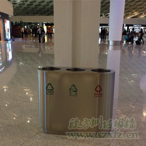機場購買的不銹鋼垃圾桶有兩種規格分別為:①585*275*650mm;②760*380*800mm。采用的是不銹鋼材料制作而成的,堅固難用且好看,絕對是一款值得購買的垃圾桶,放置在機場,與機場環境相適應,最是適合汽車站,機場,商場等地方。