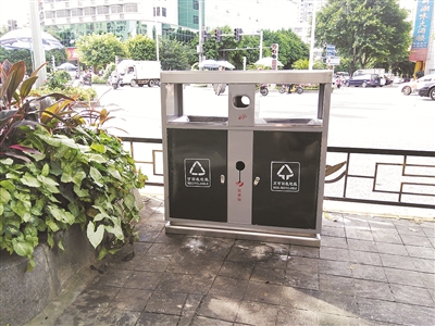市區(qū)勝利路、鐘法路115個果皮箱“集體換裝”