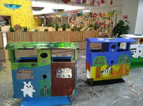 2月28日,繪本班的孩子們在美術部曾老師的帶領下,開展了“美化環境,裝點新宮”的繪畫活動,原本被置放在青宮各個角落的垃圾桶一天之間舊貌換新顏,搖身變成了一件件美麗可愛的藝術品!