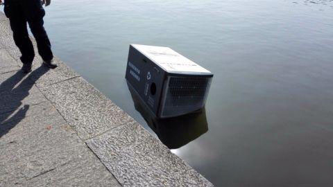 土豪垃圾桶下湖游泳
