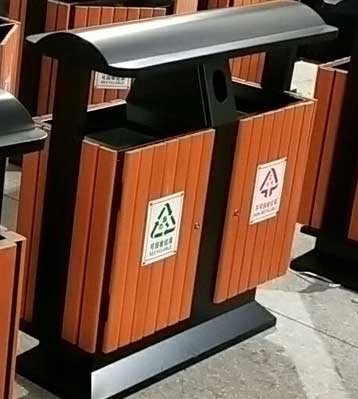 戶外鋼木分類垃圾桶擺放圖